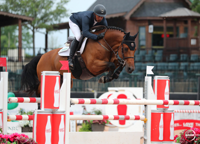 Christophe Vanderhasselt zegevierde gisteren op de openingsdag van het CSI3* in Opglabbeek met zijn zelfgefokte Numero Uno-dochter Pimpernel Vitseroel.